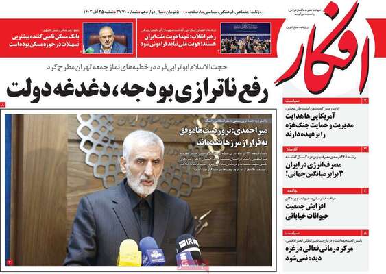 صفحه نخست روزنامههای شنبه ۲۵ آذر ۱۴۰۲
