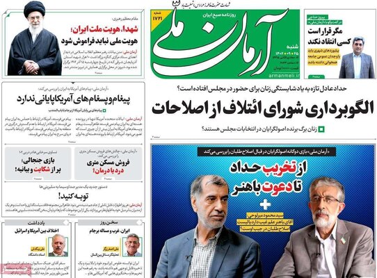 صفحه نخست روزنامه های کشور