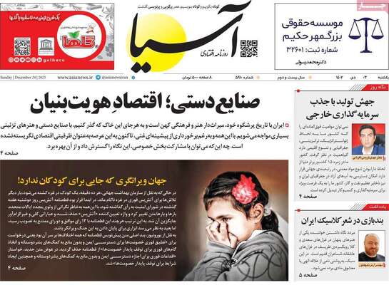 صفحه نخست روزنامه‌های یکشنبه ۳ دی ۱۴۰۲