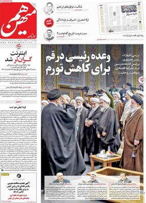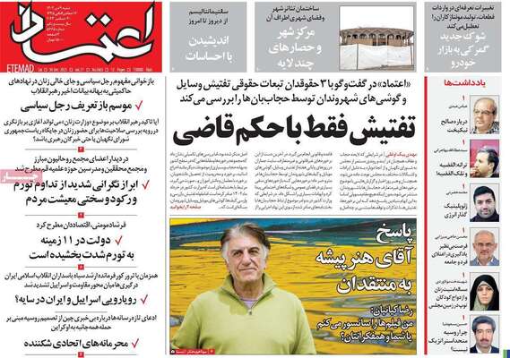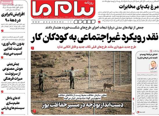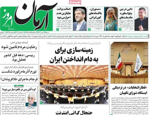 صفحه نخست روزنامه های کشور