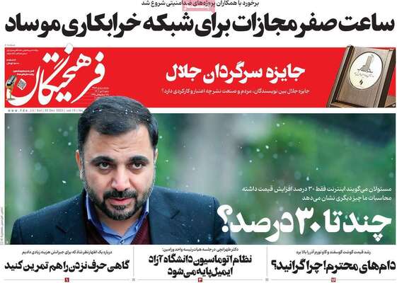 صفحه نخست روزنامههای شنبه ۹ دی ۱۴۰۲