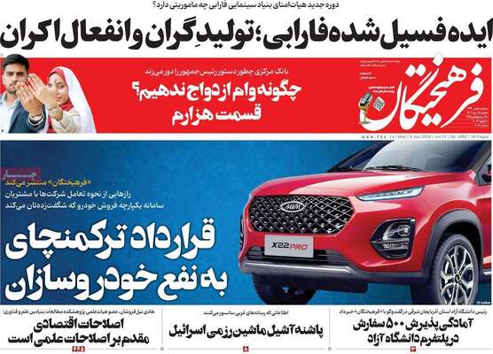 صفحه نخست روزنامههای دوشنبه ۱۸ دی ۱۴۰۲