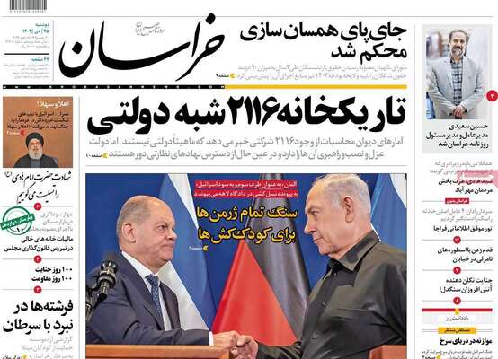 صفحه نخست روزنامههای دوشنبه ۲۵ دی ۱۴۰۲