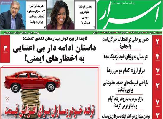 صفحه نخست روزنامههای شنبه ۷ بهمن ۱۴۰۲ را در ادامه مشاهده میکنید.