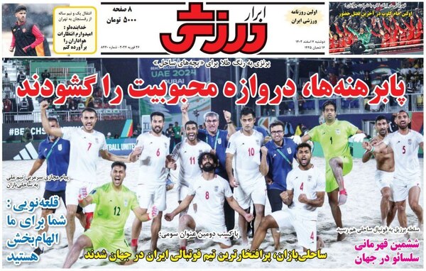 صفحه نخست روزنامههای دوشنبه ۷ اسفند ۱۴۰۲