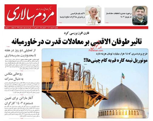 صفحه نخست روزنامههای دوشنبه ۲۱ اسفند ۱۴۰۲