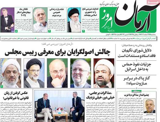 صفحه نخست روزنامههای سهشنبه ۲۲ اسفند ۱۴۰۲ را در ادامه مشاهده میکنید.