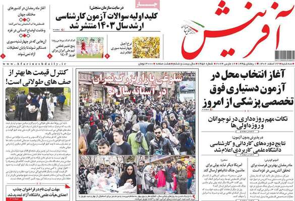 صفحه نخست روزنامههای سهشنبه ۲۲ اسفند ۱۴۰۲