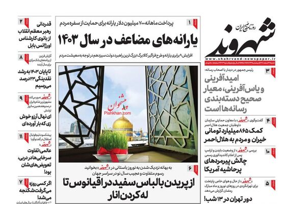 صفحه نخست روزنامههای سهشنبه ۱۴ فروردین ۱۴۰۳