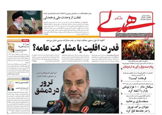 صفحه نخست روزنامههای سهشنبه ۱۴ فروردین ۱۴۰۳ را در ادامه مشاهده میکنید.