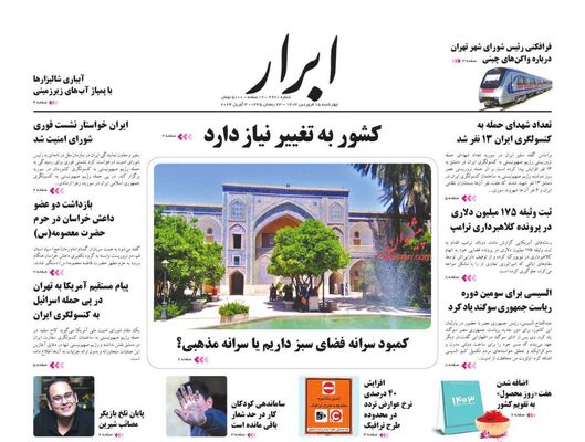 صفحه نخست روزنامههای چهارشنبه ۱۵ فروردین ۱۴۰۳