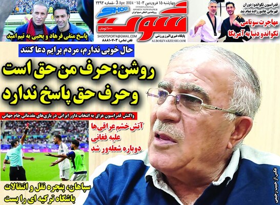صفحه نخست روزنامههای چهارشنبه ۱۵ فروردین ۱۴۰۳ را در ادامه مشاهده میکنید.