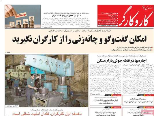 صفحه نخست روزنامههای دوشنبه ۱۷ اردیبهشت ۱۴۰۳