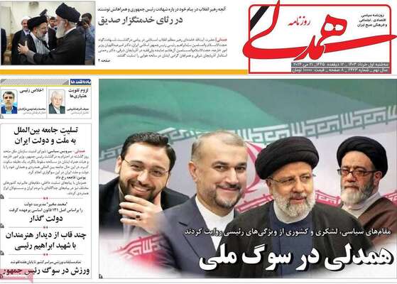صفحه نخست روزنامههای سهشنبه ۱ خرداد ۱۴۰۳