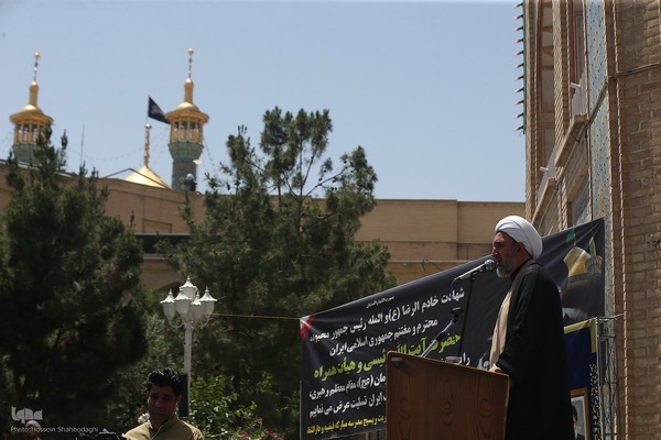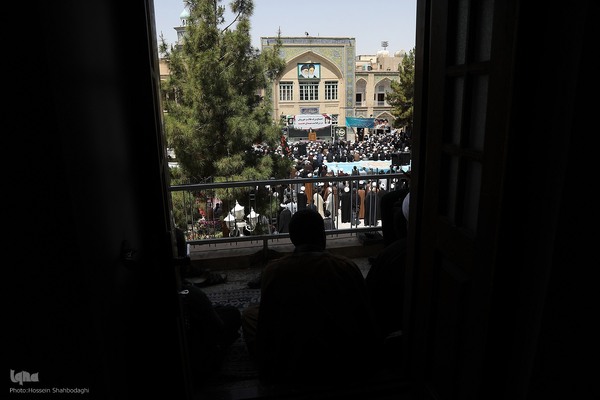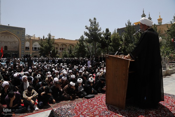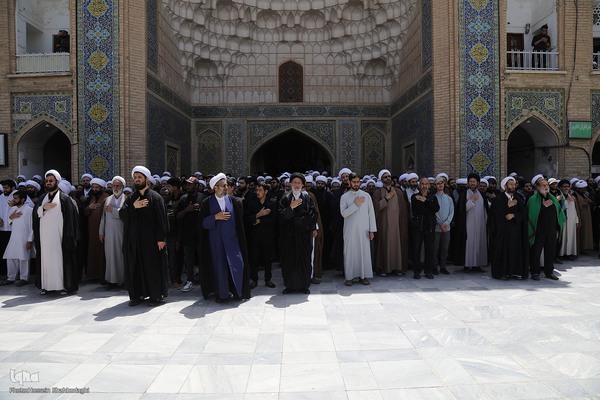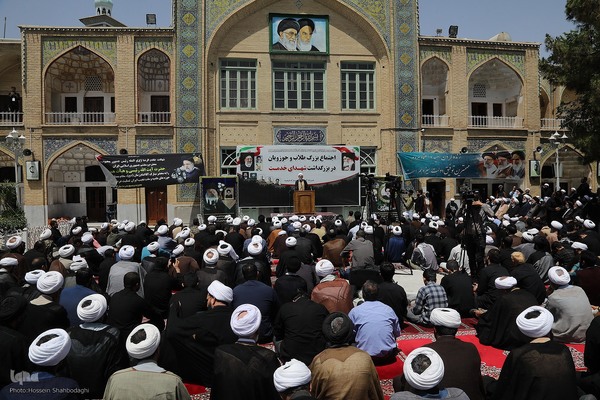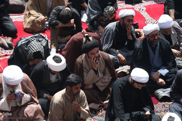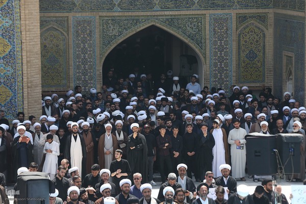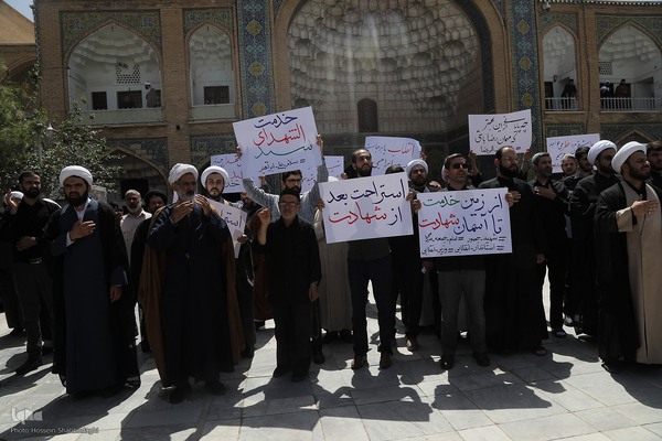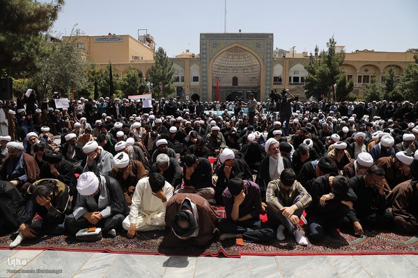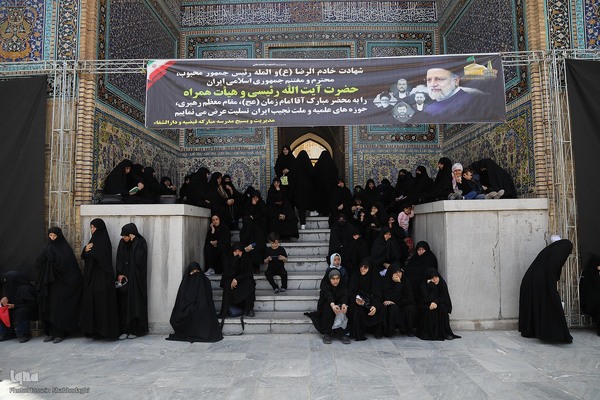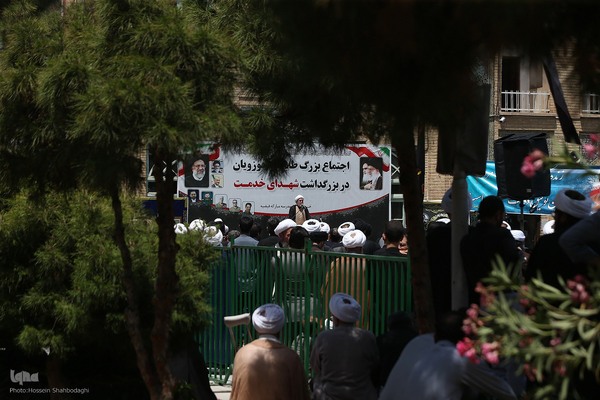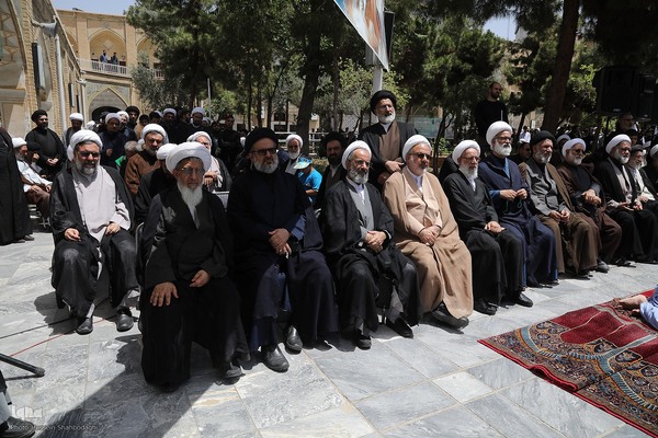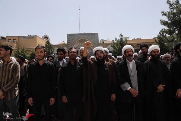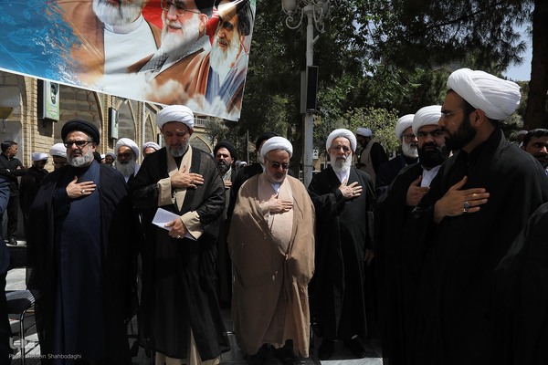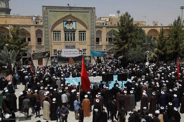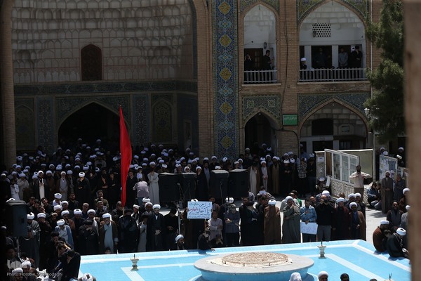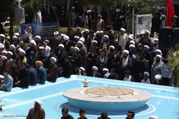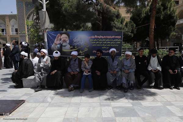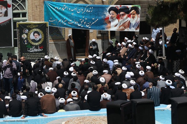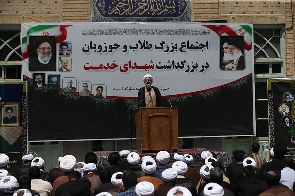 در پی شهادت رئیس جمهور و همراهانشان در سانحه هوایی طلاب و فضلای حوزه عمیه قم ظهر امروز در مدرسه فیضیه اجتماعی برگزار کردند.