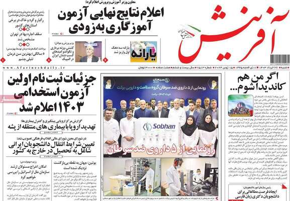 صفحه نخست روزنامههای شنبه ۲۶ خرداد ۱۴۰۳