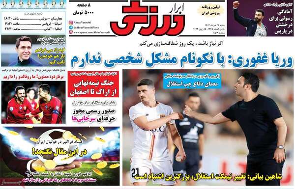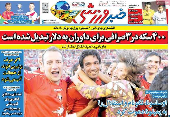 صفحه نخست روزنامههای شنبه ۲۶ خرداد ۱۴۰۳ را در ادامه مشاهده میکنید.