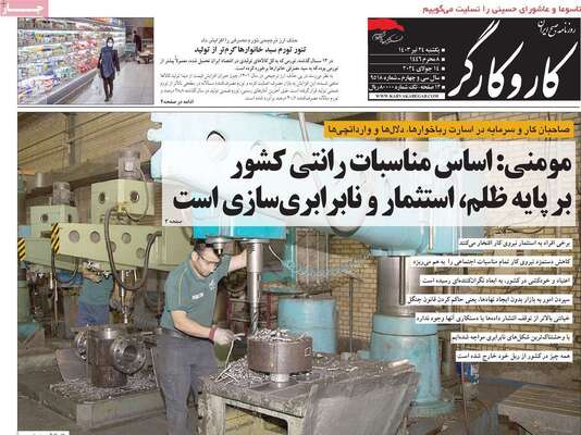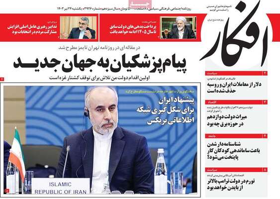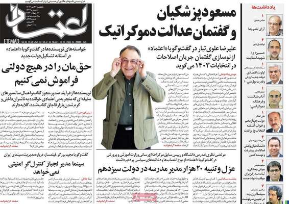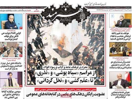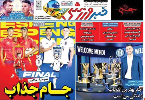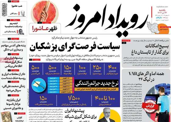 صفحه نخست روزنامه‌های یکشنبه ۲۴ تیر ۱۴۰۳ را در ادامه مشاهده می‌کنید.