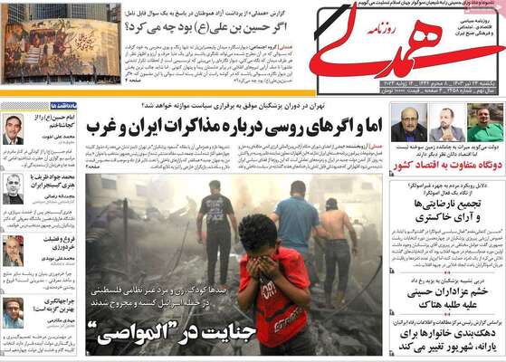 صفحه نخست روزنامه‌های یکشنبه ۲۴ تیر ۱۴۰۳
