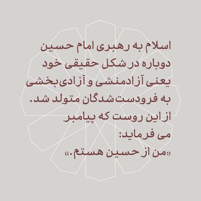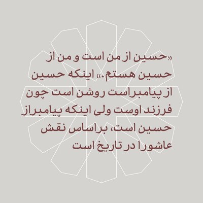 اینکه حسین(ع) از پیامبر(ص) است روشن است چون فرزند اوست ولی اینکه پیامبر(ص) از حسین(ع) است، بر اساس نقش عاشورا در تاریخ است، زیرا اسلامی که برای آزادسازی انسان آمده بود، خود به غل و زنجیری در دست مردمان فرصتطلب تبدیل شد. اسلام به رهبری امام حسین(ع) دوباره در شکل حقیقی خود یعنی آزادمنشی و آزادیبخشی به فرودستشدگان متولد شد. از این روست که پیامبر(ص) میفرماید: «من از حسین(ع) هستم». [کتاب سفر شهادت، گفتارهای امام موسی صدر درباره واقعه عاشورا]