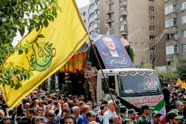 پیکر شهید «اسماعیل هنیه» و همراه او، پس از اقامه رهبر معظم انقلاب اسلامی، از دانشگاه تهران تا تقاطع نواب خیابان آزادی بر دستان مردم تهران، تشییع شد.