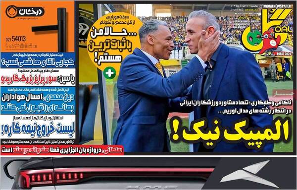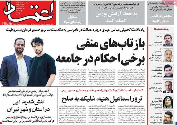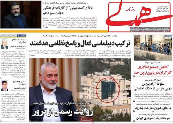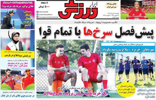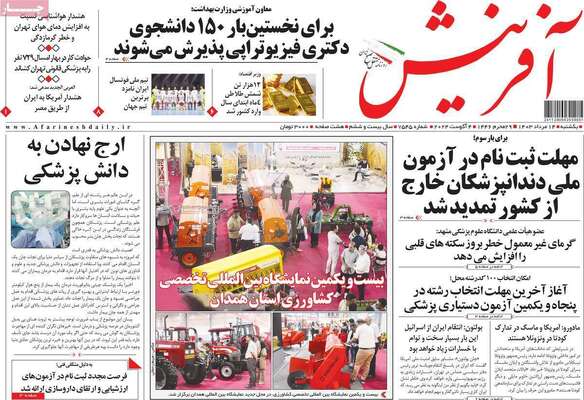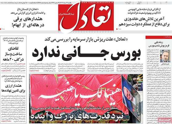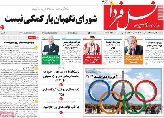 صفحه نخست روزنامه‌های یکشنبه ۱۴ مرداد ۱۴۰۳