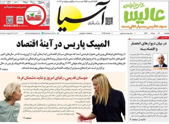 صفحه نخست روزنامه‌های یکشنبه ۱۴ مرداد ۱۴۰۳ را در ادامه مشاهده می‌کنید.