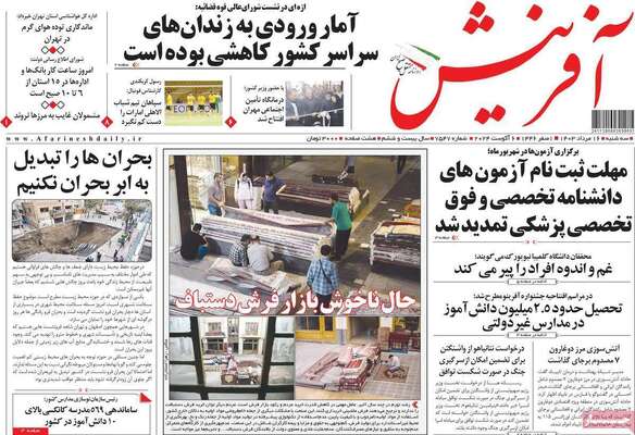 صفحه اول روزنامه ها
