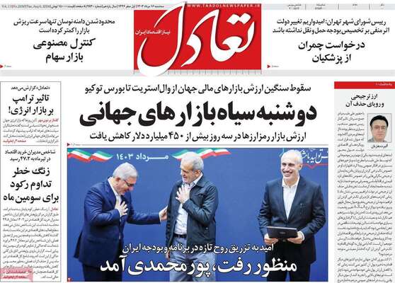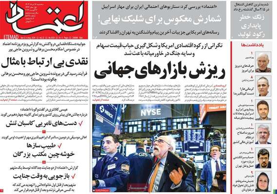 صفحه نخست روزنامههای سهشنبه ۱۶ مرداد ۱۴۰۳
