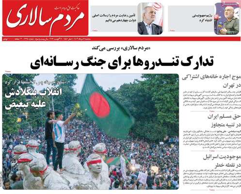 صفحه نخست روزنامههای سهشنبه ۱۶ مرداد ۱۴۰۳ را در ادامه مشاهده میکنید.