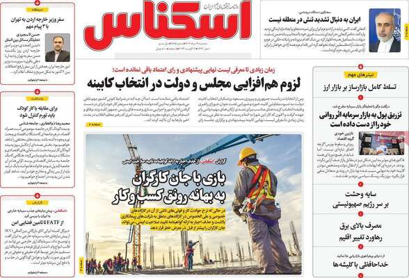 صفحه نخست روزنامههای یکشنبه ۱۸ آبان ۱۴۰۴