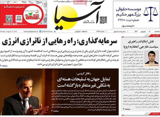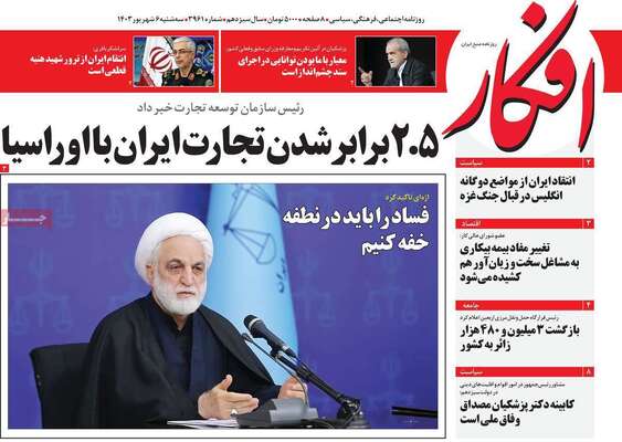 صفحه نخست روزنامههای سهشنبه ۶ شهریور ۱۴۰۳