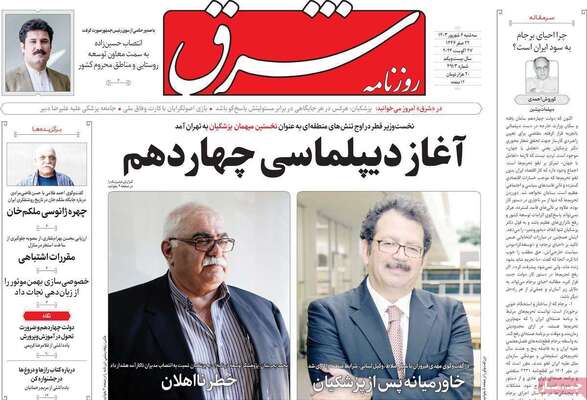 صفحه نخست روزنامههای سهشنبه ۶ شهریور ۱۴۰۳ را در ادامه مشاهده میکنید.