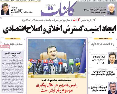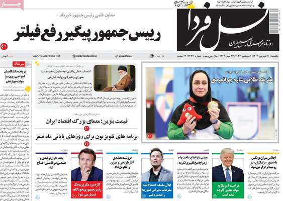 صفحه نخست روزنامههای یکشنبه ۱۱ شهریور ۱۴۰۳