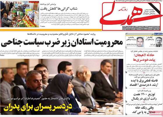 صفحه نخست روزنامه ها