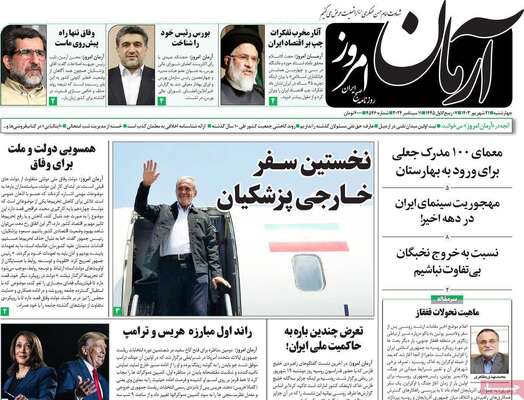 صفحه نخست روزنامههای چهارشنبه ۲۱ شهریور ۱۴۰۳