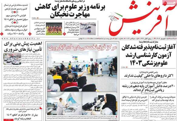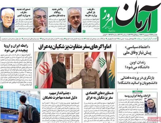 صفحه نخست روزنامههای یکشنبه ۲۵ شهریور ۱۴۰۳
