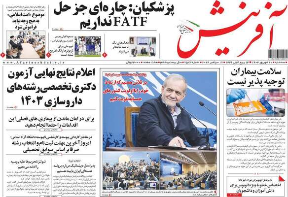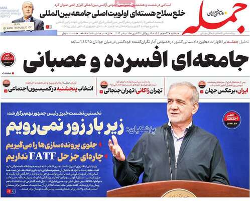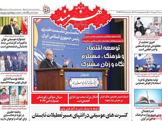 صفحه نخست روزنامههای سهشنبه ۲۷ شهریور ۱۴۰۳
