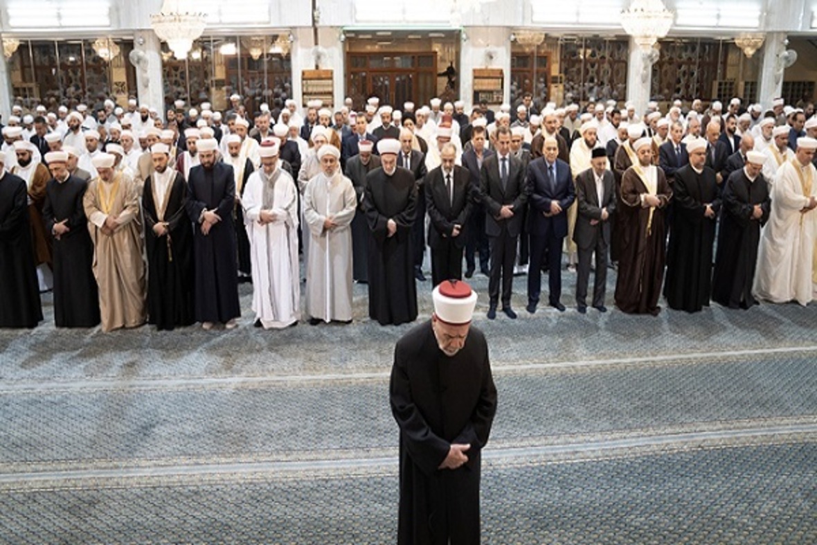 به گزارش ایکنا به نقل از الفرات، بشار اسد، رئیس جمهور سوریه شامگاه روز دوشنبه، 26 شهریور (12 ربیع الاول) با حضور در مسجد سعد بن معاذ دمشق در مراسم بزرگداشت میلاد پیامبر(ص) حضور یافت. این مراسم که به همت وزارت اوقاف سوریه برگزار شده بود، با تلاوت آیاتی چند از قرآن کریم از سوی شیخ سلیم العقاد آغاز شد.