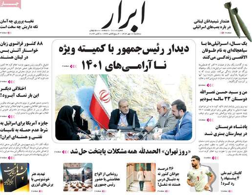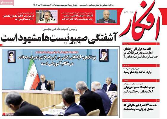صفحه نخست روزنامههای سهشنبه ۱۷ مهر ۱۴۰۳