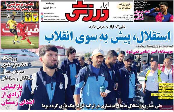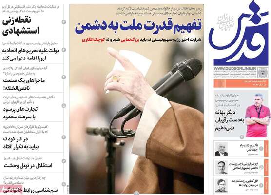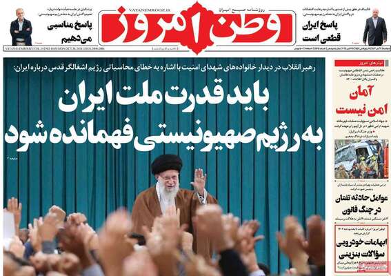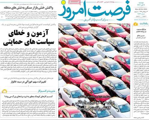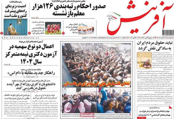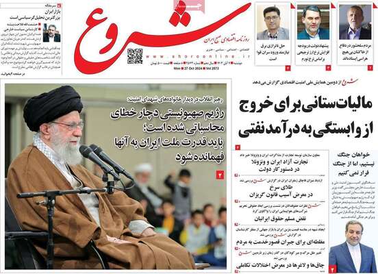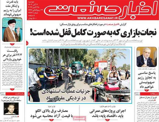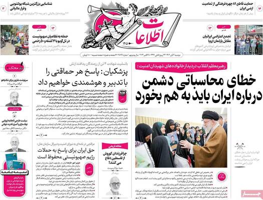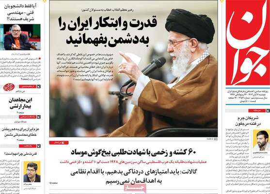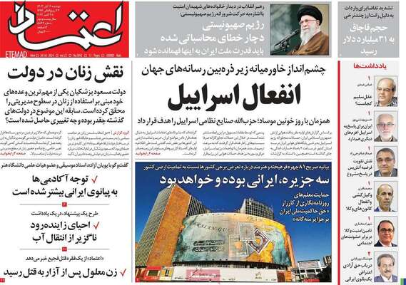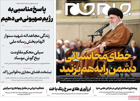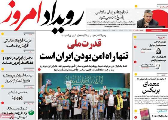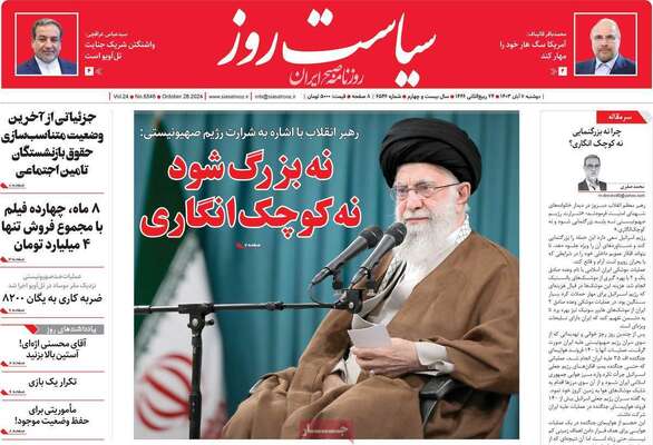 صفحه نخست روزنامه‌های دوشنبه ۷ آبان ۱۴۰۳ را که به بیانات رهبر معظم انقلاب در دیدار خانواده شهدای امنیت، اشتباه محاسباتی رژیم صهیونیستی و مهمترین رویدادهای ورزشی پرداخته‌اند؛ در ادامه مشاهده می‌کنید.