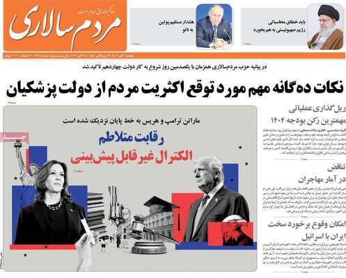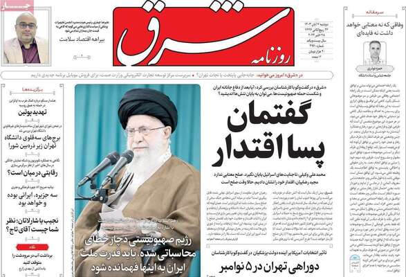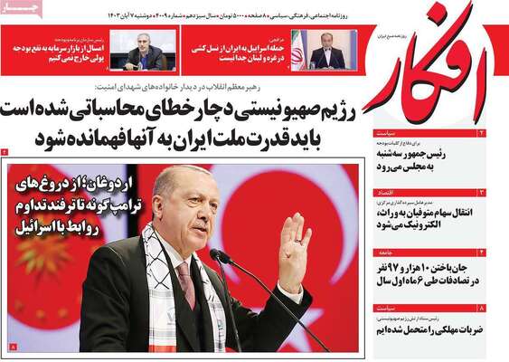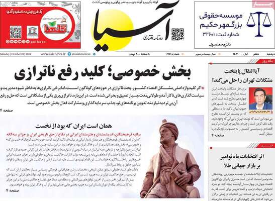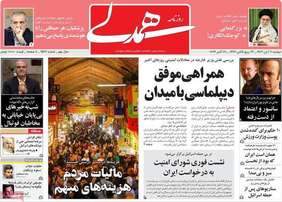 صفحه نخست روزنامه‌های دوشنبه ۷ آبان ۱۴۰۳