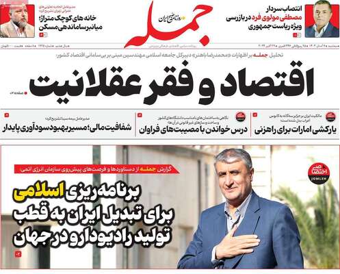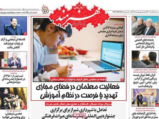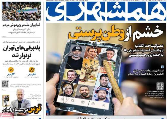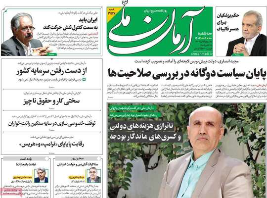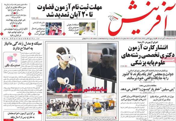 صفحه نخست روزنامههای سهشنبه ۸ آبان ۱۴۰۳
