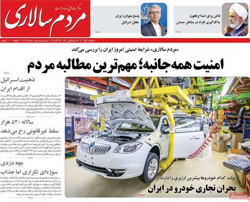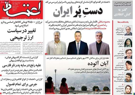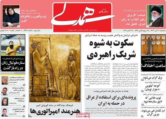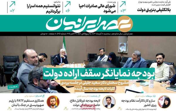 صفحه نخست روزنامههای سهشنبه ۸ آبان ۱۴۰۳ را که به پاسخ قطعی ایران به گستاخی رژیم صهیونیستی، ناترازی بودجه، بحران آلایندهها در خزر و مهمترین رویدادهای ورزشی پرداختهاند؛ در ادامه مشاهده میکنید.
