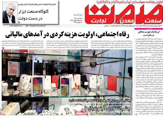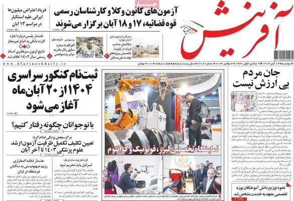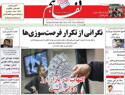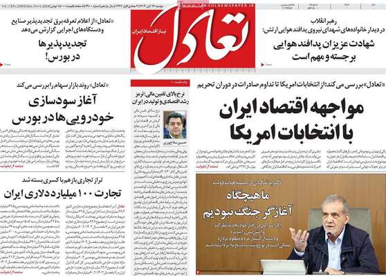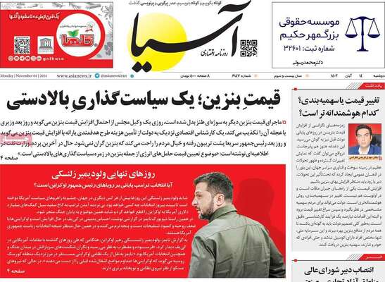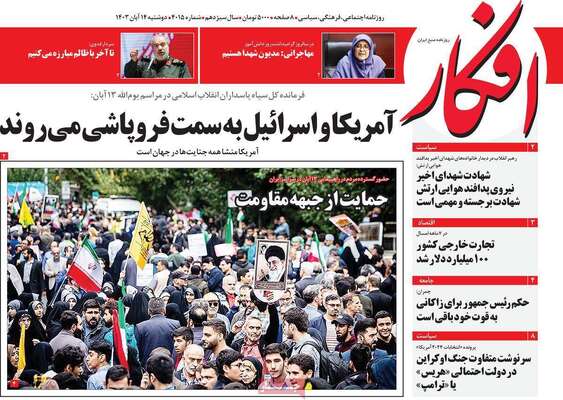 صفحه نخست روزنامههای دوشنبه ۱۴ آبان ۱۴۰۳