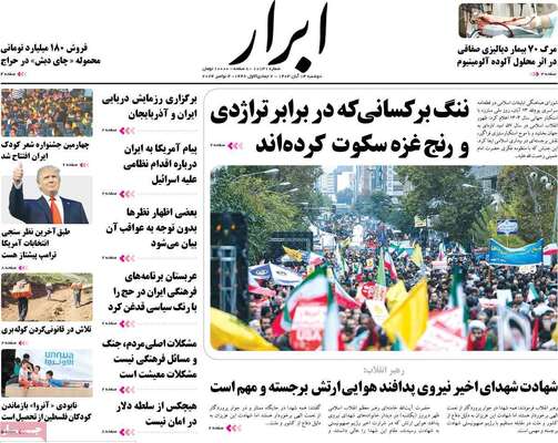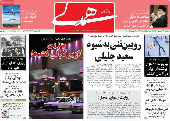صفحه نخست روزنامههای دوشنبه ۱۴ آبان ۱۴۰۳ را که به حضور پرشور دانشآموزان در حمایت از حزبالله، انتخابات آمریکا، تکذیب گرانی بنزین و مهمترین رویدادهای ورزشی پرداختهاند؛ در ادامه مشاهده میکنید.