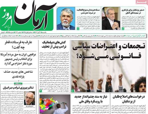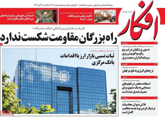 صفحه نخست روزنامههای یکشنبه ۲۰ آبان ۱۴۰۳