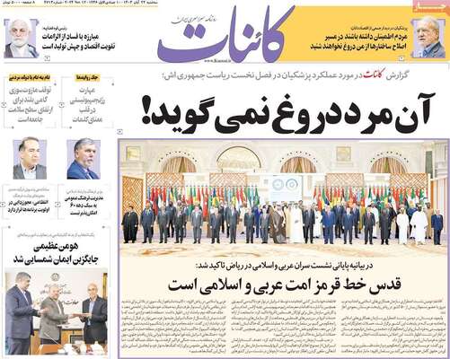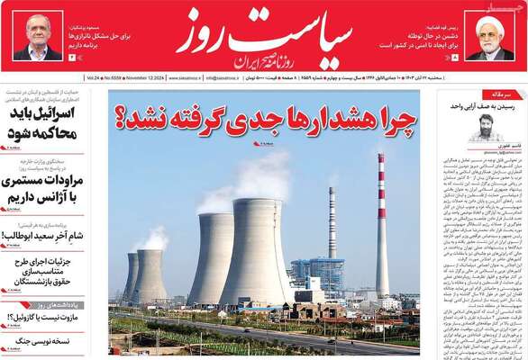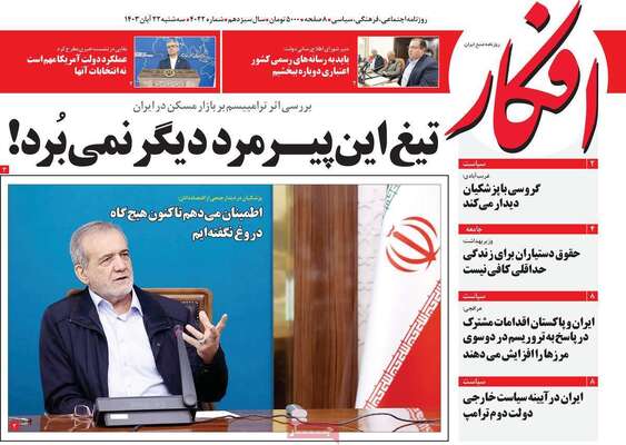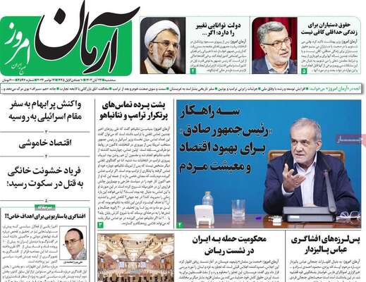 صفحه نخست روزنامههای سهشنبه ۲۲ آبان ۱۴۰۳ را که به موج محکومیت علیه رژیم صهیونیستی و راهکارهای رئیس جمهور برای بهبود معیشت و مهمترین رویدادهای ورزشی پرداختهاند؛ در ادامه مشاهده میکنید.