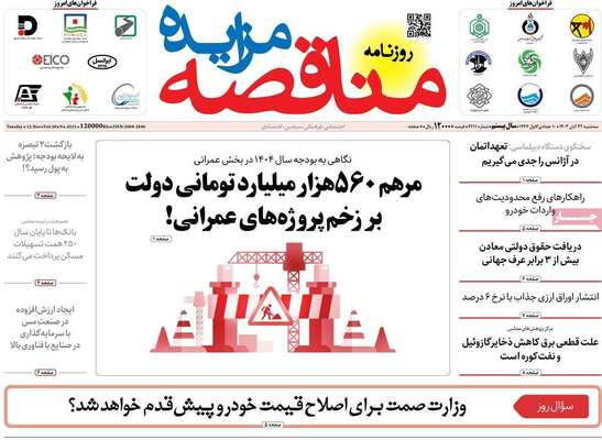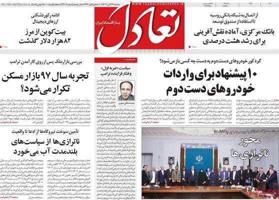 صفحه نخست روزنامههای سهشنبه ۲۲ آبان ۱۴۰۳