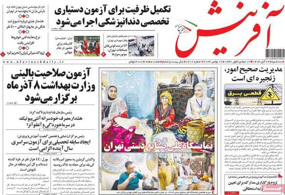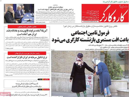 صفحه نخست روزنامههای سهشنبه ۲۰ آبان ۱۴۰۴